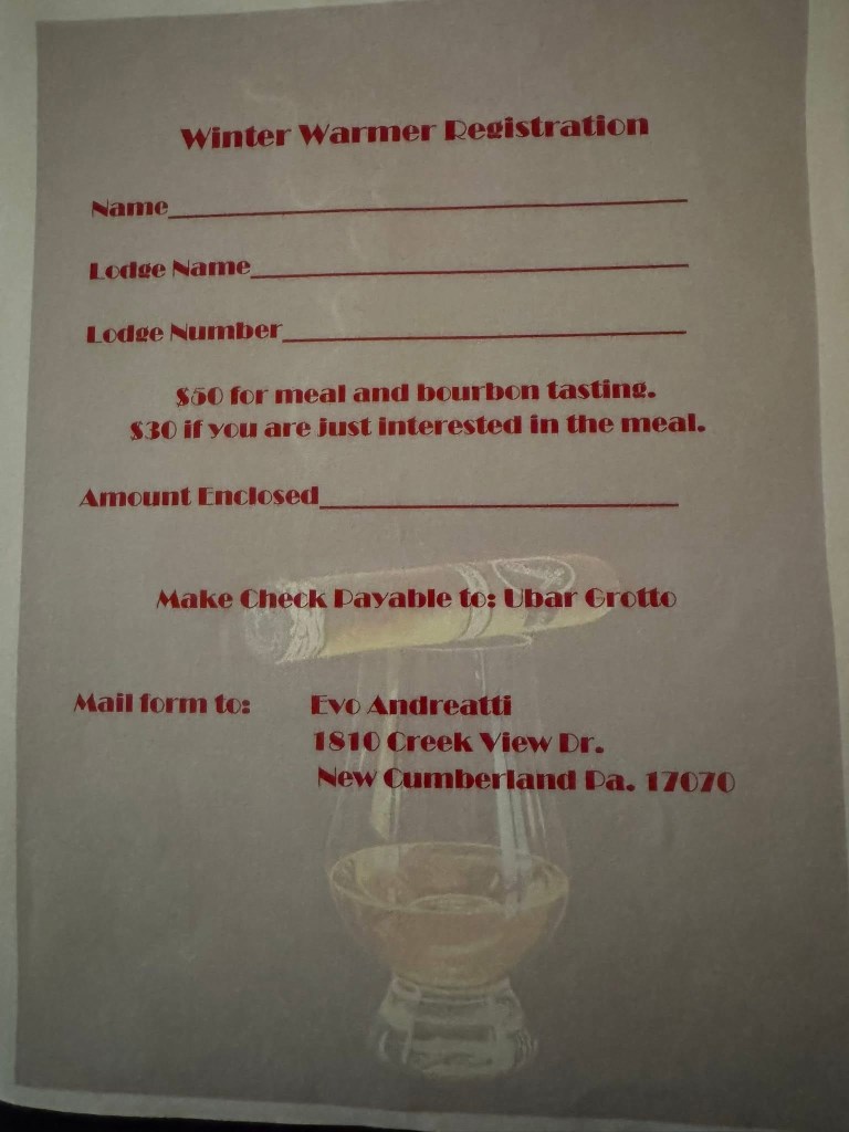 Pennsylvania Grotto Association President Jeff Fulton, P.M. accompanied by the Second Vice President Jared Kichline, P.M., and the Pennsylvania Grotto Association Chaplain Jeff Fulton, Sr. It was a great evening of good fellowship.